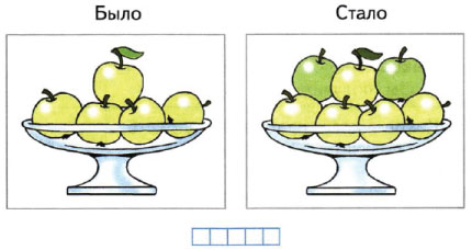 Что изменилось? Запиши это, используя цифры и знаки +, -, =.