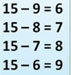 | 15 + 5 = = 10 + 5 + 5 = 10 + (5 + 5) = 10 + 10 = 20 | 6 + 9 = 6 + 4 + 5 = (6 + 4) + 5 = 10 + 5 = 15 |