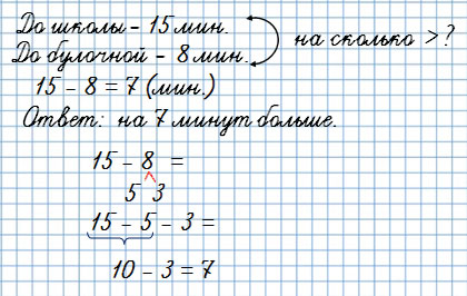 4. Артём тратит на дорогу до школы 15 мин, а до булочной 8 мин. На сколько больше времени тратит Артём на дорогу до школы, чем на дорогу до булочной?