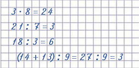 | 16 : 8 • 3 = 6 1) 16 : 8 = 2 2) 2 • 3 = 6 | 24 : 4 : 3 = 2 1) 24 : 4 = 6 2) 6 : 3 = 2 |