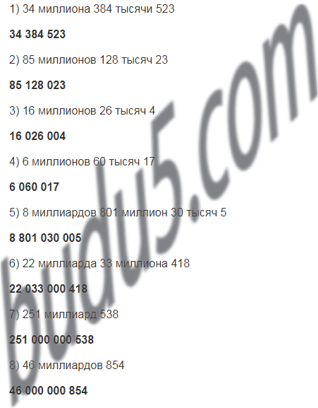 5) 8 миллиардов 801 миллион 30 тысяч 5;