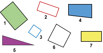 Прямоугольники - это фигуры 1, 2, 3, 7