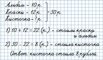 2. 1) За альбом для рисования, краски и кисточку Ира уплатила 30 р. Альбом стоил 10 р., а краски — 12 р. Сколько стоила кисточка?