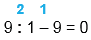 1) 9 : 1 = 9 2) 9 - 9 = 0 |