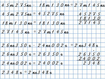 1 кг = 1000 г, значит 26 кг = 26 • 1000 = 26000 г, а 24 кг = 24 • 1000 = 24000 г.