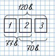 319. В трёх составах 120 товарных вагонов. В первом и втором составах вместе 77 вагонов, во втором и третьем - 70 вагонов. Сколько вагонов в каждом составе? Сделай чертёж и реши её.