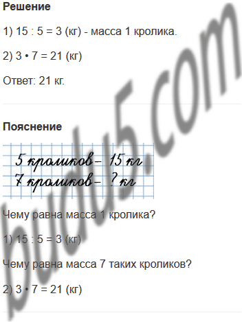 9. Масса 5 одинаковых кроликов 15 кг. Найди массу 7 таких кроликов.