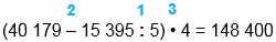 (40 179 - 15 395 : 5) • 4 = 148 400