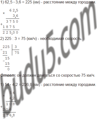 1) Автомобиль преодолевает расстояние между двумя городами за 3,6 ч, если двигается со скоростью 62,5 км/ч. С какой скоростью он должен двигаться, чтобы преодолеть это расстояние за 3 ч?