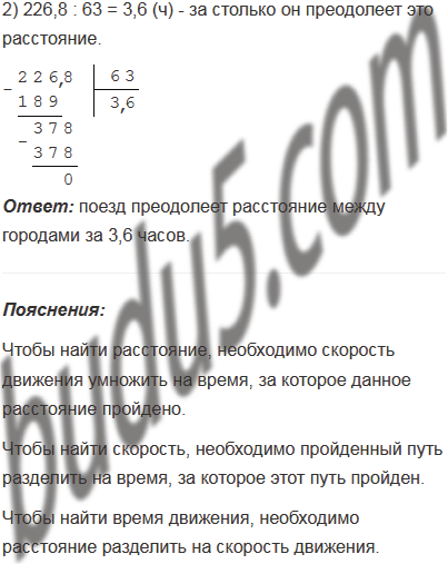 2) Поезд проходит расстояние между двумя станциями за 4,2 ч, двигаясь со скоростью 54 км/ч. За какое время он пройдёт это расстояние, если будет двигаться со скоростью 63 км/ч?