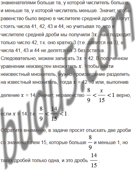 Найдите две дроби со знаменателем 15, которые больше и меньше 1.