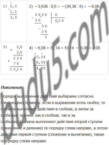 б) 3,636 : 0,6 + 2,6(5 1,1).