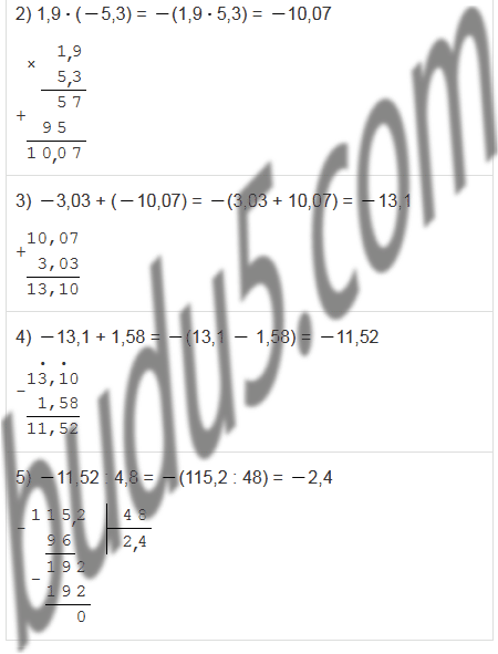 в) (2,727 : (0,9) + 1,9(5,3) + 1,58) : 4,8;