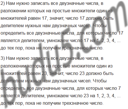 Запишите все двузначные числа, в разложении которых на простые множители один из множителей равен: 1) 7; 2) 17; 3) 23.