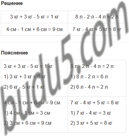 4 см - 1 см + 6 см = ![]() | 7 кг - 4 кг + 5 кг = кг |
