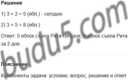 Задание № 1. Рита вчера съела 3 яблока, а сегодня - на 2 яблока больше. Сколько яблок съела Рита сегодня? Сколько яблок съела Рита за 2 дня?
