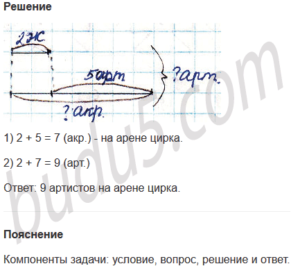 Задание № 4. На арене цирка 2 жонглёра, а акробатов - на 5 больше. Сколько всего артистов на арене цирка?