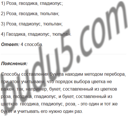 Есть четыре цветка: роза, гвоздика, гладиолус и тюльпан. Сколько есть способов составить букет из трех цветков?