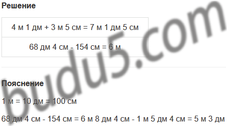 | 4 м 1 дм + 3 м 5 см | 68 дм 4 см - 154 см |