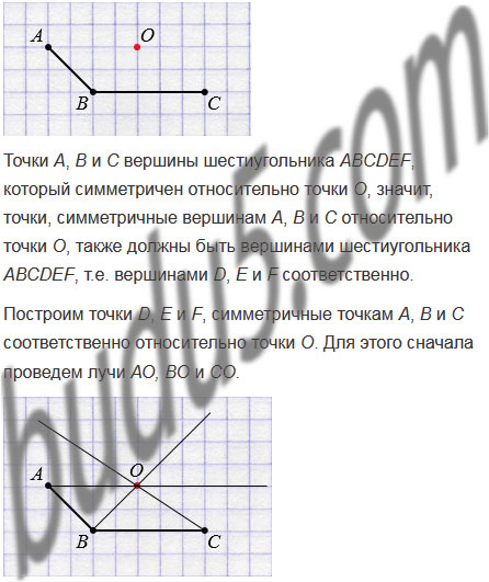 На рисунке161 изображены стороны АВ и ВС и центр симметрии О шестиугольника АВСDЕF. Перерисуйте рисунок в тетрадь и постройте шестиугольник АВСDЕF.