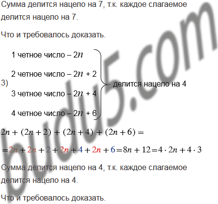 2) сумма семи последовательных натуральных чисел делится нацело на 7;