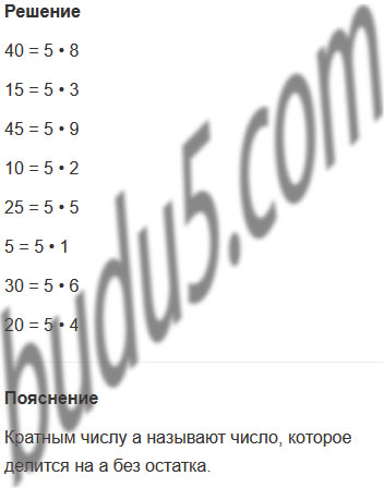 Задание № 9. Найди числа, кратные 5, и представь их в виде 5 • k.
