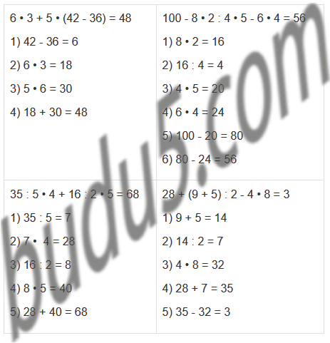 6 • 3 + 5 • (42 - 36) 100 - 8 • 2 : 4 • 5 - 6 • 4