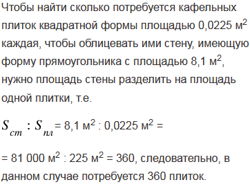 Сколько потребуется кафельных плиток квадратной формы со стороной 15 см, чтобы облицевать ими стену, имеющую форму прямоугольника со сторонами 3 м и 2,7 м?