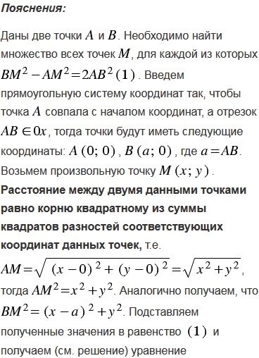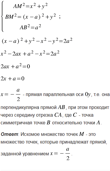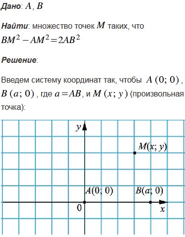 Даны две точки А и В. Найдите множество всех точек М, для каждой из которых ВМ2 - АМ2 = 2АВ2.