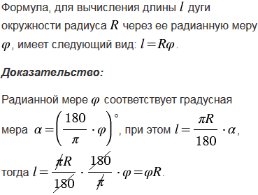 Выведите формулу для вычисления длины дуги окружности, используя её радианную меру.