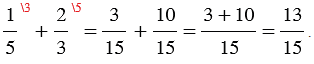 равен 15. Каждую из этих дробей заменим на ей равную со знаменателем 15. Этой заменой мы сложение дробей с разными знаменателями сведем к сложению дробей с одинаковыми знаменателями, получим: