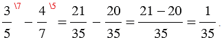 равен 35. Каждую из этих дробей заменим на ей равную со знаменателем 35. Этой заменой мы вычитание дробей с разными знаменателями сведем к вычитанию дробей с одинаковыми знаменателями, получим:
