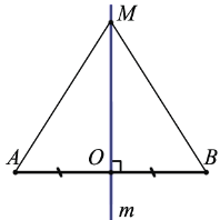 ОВМ: так как m - серединный перпендикуляр отрезка АВ, то рассматриваемые треугольники прямоугольные. ОА = ОВ, т.к. О - середина отрезка АВ, ОМ - общий катет, следовательно,